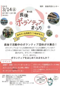 藤沢市長後地区で活動するボランティア団体が集まる交流イベント「第4回 長後ボランティアまつり」が、2026年3月14日(土)、10:00~14:00に長後市民センターで開催される。 テーマは「知ろう!出会おう!つながろう […]