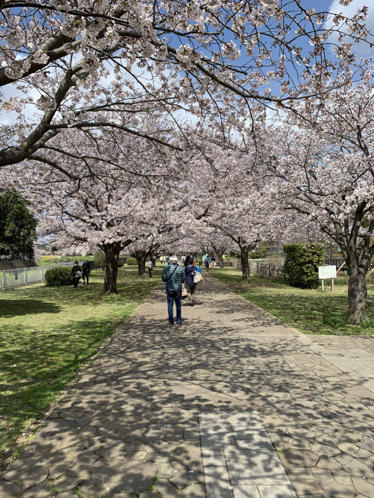 昭和の後期にできた公園なので、桜の木もかなり立派です。その辺りで少人数で集まってお花見をしている方がいらっしゃいました。